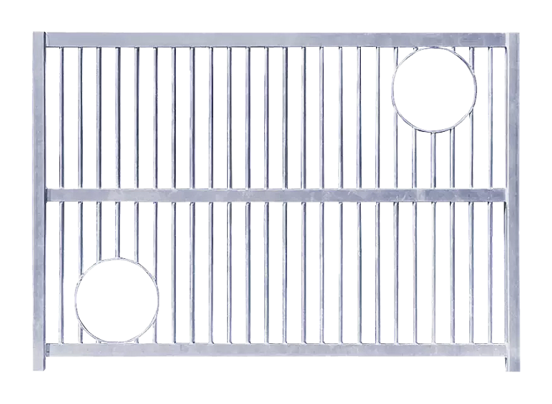 Torwand aus Aluminium mit zwei Ziellöchern Ø 500 mm. Torrahmen aus Rechteckprofil 80 x 80 mm. Ballfangrohre aus 30 mm Rundrohr, stabilisiert durch rechteckige Querrohre 80 x 40 mm. Komplett in einem Stück verschweißt. Der Abstand der Ballfangrohre von 85 mm ist nach Vorschrift DIN EN-15312 eingehalten. Zum Einbetonieren (empfohlene Einbautiefe 400 mm) in ein bauseitiges Betonfundament B 700 x T 700 x H 700 mm pro Pfosten.