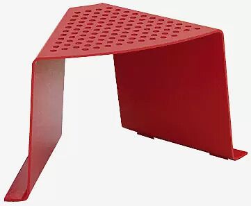 Sitz mit Seitenteilen und gelochter Sitzfläche (Ø 20 mm) aus Flachstahl, 8 mm. Unsichtbare Bodenbefestigung mittels Gewindestangen zum Einbetonieren (nicht im Lieferumfang enthalten).