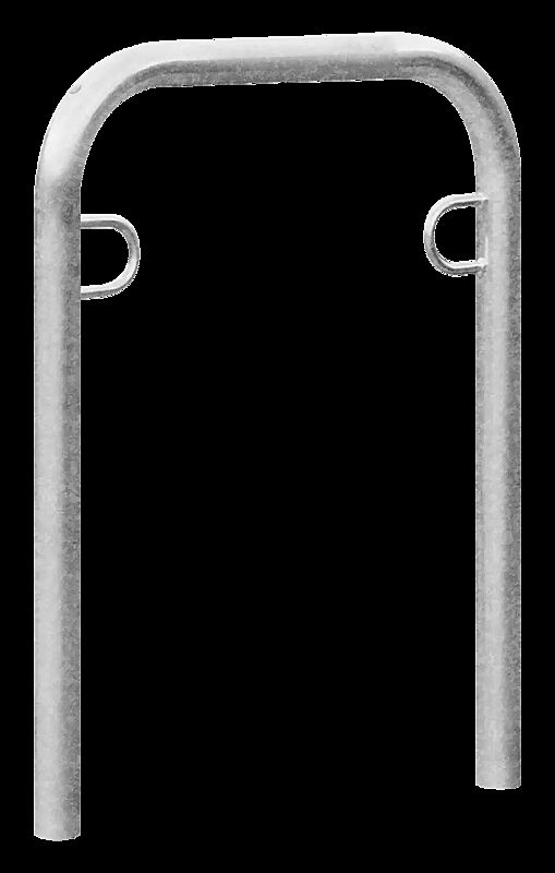 Anlehnbügel aus Rundrohr. An beiden inneren Seiten ist eine angeschweißte Ringöse zur Diebstahlsicherung.