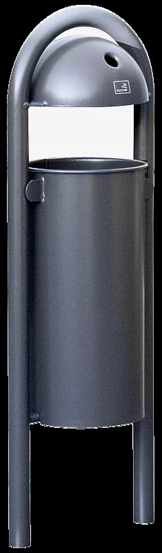 Abfallbehälter und Schutzdach mit integriertem Ascher im Rohrbogenständer aus Stahl. Behälter aus Vollblech. Behälterboden mit Flüssigkeitsablauflöchern. Mit feuerverzinktem Erdstück zum Einbetonieren, Einbautiefe 500 mm. Lieferung inkl. Piktogramm-Aufkleber "Zigarette". Behälter mittels Dreikantschloss entriegeln und zum Entleeren abnehmen. Ascher separat entriegeln, Bodenklappe vom Ascher klappt nach unten, Inhalt zum Entleeren entnehmen, 1 Dreikantschlüssel im Lieferumfang enthalten.