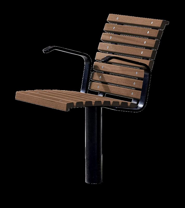 Sitz mit einer Unterkonstruktion und einem Standfuß Ø 76 mm aus Stahl. Sitzfläche und Rückenlehne mit Holzbelattung, Armlehnen aus Stahl. Gut kombinierbar mit Tisch FJORDPARK zu einer Sitzgruppe. Auf Anfrage auch in einer 360° drehbaren Ausführung erhältlich. Auf Anfrage auch zum Aufdübeln bei +/- 0 mm erhältlich.