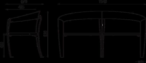 Sitzbank mit Gestell, Rückenlehne und Armlehnen aus Gusseisen. Sitzfläche aus lasergeschnittenem Stahl. Befestigungsmaterial im Lieferumfang enthalten.