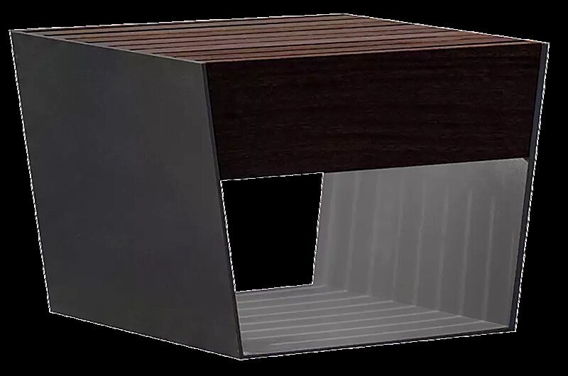Sitz mit Seitenteilen aus Flachstahl. Sitzfläche mit Holzbelattung. Sitz ist mit einer LED-Beleuchtung ausgestattet. Unsichtbare Bodenbefestigung mittels Gewindestangen zum Einbetonieren (nicht im Lieferumfang enthalten). Zum Aufdübeln mittels sichtbarer Bodenbefestigung auf Anfrage erhältlich.