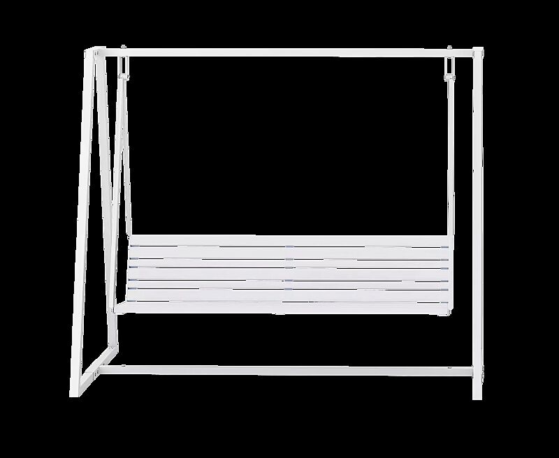 Schaukelbank mit einem Gestell und Unterkonstruktion aus Stahl. Sitzfläche und Rückenlehne aus Aluminium-Rechteckprofilen. Die Aufhängung der Schaukel erfolgt über Stahlwinkel am Schaukelbalken. Bietet ausreichend Sitzfläche für 2 Erwachsene bzw. 3 Kinder. Befestigungsmaterial nicht im Lieferumfang enthalten.