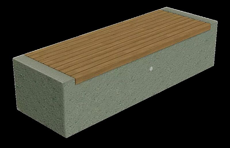 Sitzbank aus rekonstituiertem Marmor mit Stahlbewehrung verstärkt, standardmäßig mit integriertem Nivelliersystem. Sitzoberfläche aus gestocktem rekonstituiertem Marmor mit Holzbelattung (B x T 1600 x 600 mm). Alle Oberflächen mit transparenter Beschichtung zum Schutz gegen Verwitterung. Alle Kanten sind abgerundet. Lieferung erfolgt in einem Stück (Entladen bauseits). Für die Entladung vor Ort ist ein Stapler notwendig.