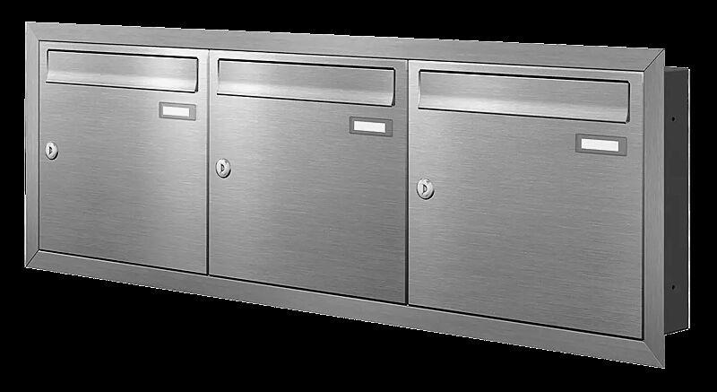 Unterputzanlage mit Kastengehäuse aus Stahl, verzinkt. Entnahmetür, Einwurfklappe und Putzabdeckrahmen aus Edelstahl. Zur Wandbefestigung, 3-teilig. Pro Briefkasten ist ein Namensschild inklusive. Verriegelung mittels Zylinderschloss, inkl. 2 Schlüsseln. Befestigungsmaterial nicht im Lieferumfang enthalten.