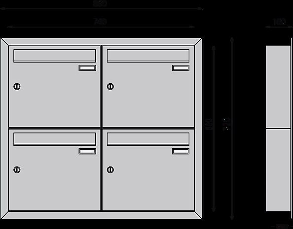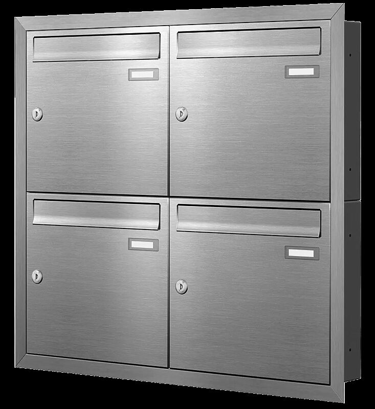 Unterputzanlage mit Kastengehäuse aus Stahl, verzinkt. Entnahmetür, Einwurfklappe und Putzabdeckrahmen aus Edelstahl. Zur Wandbefestigung, 4-teilig. Pro Briefkasten ist ein Namensschild inklusive. Verriegelung mittels Zylinderschloss, inkl. 2 Schlüsseln. Befestigungsmaterial nicht im Lieferumfang enthalten.