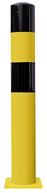Extrem belastbarer Poller aus Stahl. Wandstärke 4,5 mm. Zum Aufdübeln mit Bodenplatte (250 x 250 x 15 mm) bei +/- 0 mm, Befestigungsmaterial siehe Zubehör.