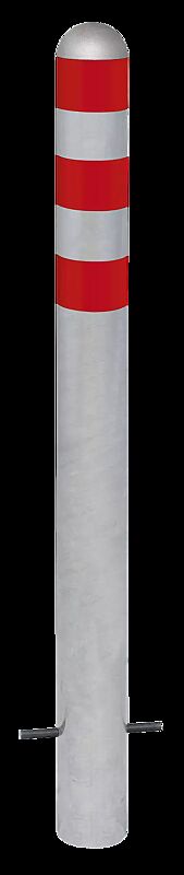 Schutzpoller zum Sichern von E-Ladestationen aus Stahl (Ø 108 mm), Wandstärke 2 mm. Pollerkopf aus Aluminium. Mit 3 Reflexstreifen (je 75 mm hoch) in rot.