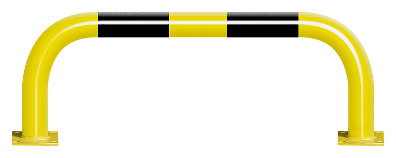 Rammschutzbügel aus Stahlrohr (Ø 76 mm), Wandstärke 3 mm. Zum Aufdübeln mit Bodenplatte (160 x 140 mm).
