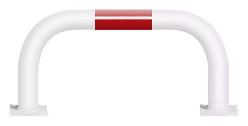 Rammschutzbügel aus Stahlrohr (Ø 76 mm), Wandstärke 3 mm. Zum Aufdübeln mit Bodenplatte (160 x 140 mm).