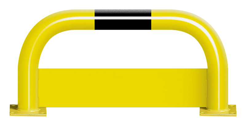 Rammschutzbügel aus Stahlrohr (Ø 76 mm), Wandstärke 3 mm. Zum Aufdübeln mit Bodenplatte (160 x 140 mm).