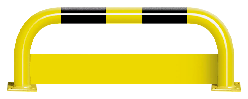 Rammschutzbügel aus Stahlrohr (Ø 76 mm), Wandstärke 3 mm. Zum Aufdübeln mit Bodenplatte (160 x 140 mm).