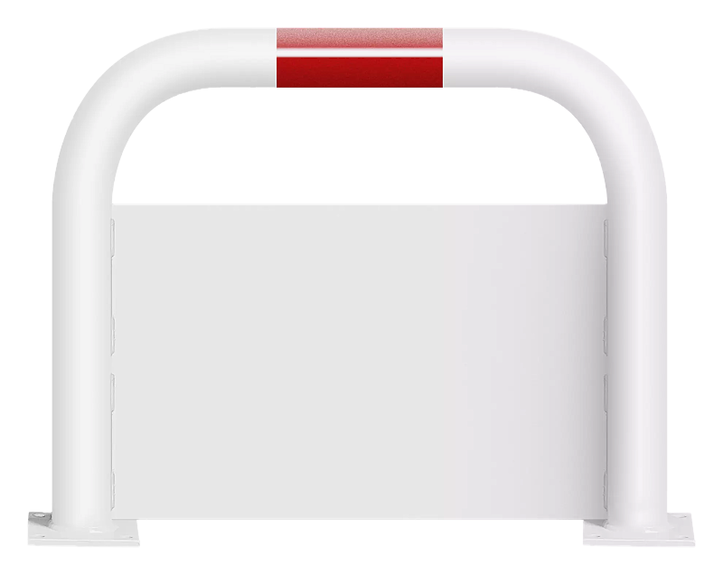 Rammschutzbügel aus Stahlrohr (Ø 76 mm), Wandstärke 3 mm. Zum Aufdübeln mit Bodenplatte (160 x 140 mm).