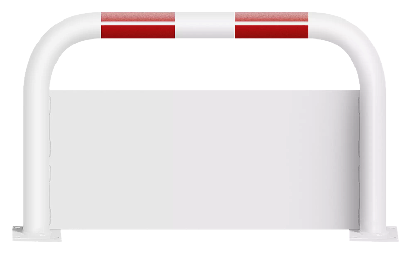 Rammschutzbügel aus Stahlrohr (Ø 76 mm), Wandstärke 3 mm. Zum Aufdübeln mit Bodenplatte (160 x 140 mm).