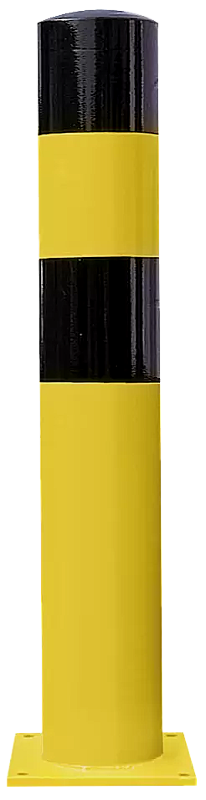 Extrem belastbarer Poller aus Stahl. Wandstärke 4,5 mm. Zum Aufdübeln mit Bodenplatte (250 x 250 x 15 mm) bei +/- 0 mm, Befestigungsmaterial siehe Zubehör.