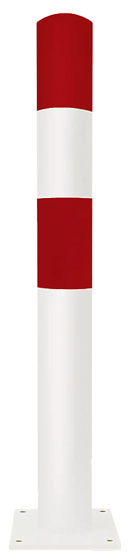 Extrem belastbarer Poller aus Stahl. Wandstärke 4,5 mm. Zum Aufdübeln mit Bodenplatte (250 x 250 x 15 mm) bei +/- 0 mm, Befestigungsmaterial siehe Zubehör.
