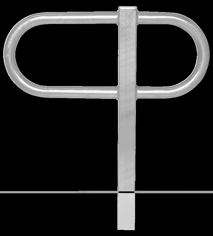 Anlehnbügel aus Rundrohr (Ø 48 mm) und Vierkantrohr (60 x 40 mm). Stellraumtiefe 2000 mm. Alle Stahlteile feuerverzinkt.